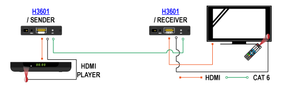 The Signal HDMI H3601 converter/extender allows for transmission of HDMI signal over longer distances via minimum Cat. 5 twisted pair cable. There is also the possibility of IR remote control extension. The extender kit consists of transmitter and receiver units.