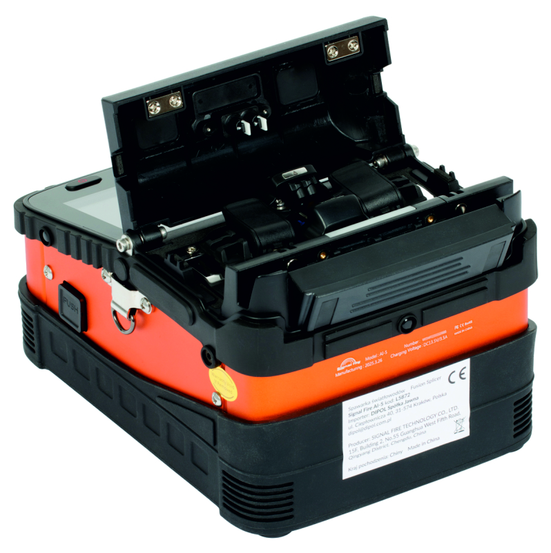 Το Signal Fire AI-5 είναι ένα εξελιγμένο μηχάνημα συγκόλλησης οπτικών ινών (fusion splicer) με έξυπνο έλεγχο, ακριβή ευθυγράμμιση πυρήνα και γρήγορη λειτουργία. Η συσκευασία περιλαμβάνει εργαλειοθήκη με όλα τα απαραίτητα αξεσουάρ, τσάντα μεταφοράς, ανταλλακτικά ηλεκτρόδια, απογυμνωτή, αλκοολούχα μαντηλάκια, φορτιστή, ανταλλακτικά καλώδια, και ίνες για δοκιμή.