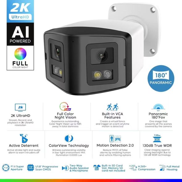 Συνδυάζει διπλό φακό 4MP για πραγματική πανοραμική κάλυψη 180°, εξαφανίζοντας τυφλά σημεία και μειώνοντας την ανάγκη για δεύτερη κάμερα—μια κίνηση που “μιλάει” σε όσους θέλουν αποτελεσματικότητα χωρίς περιττό κόστος.