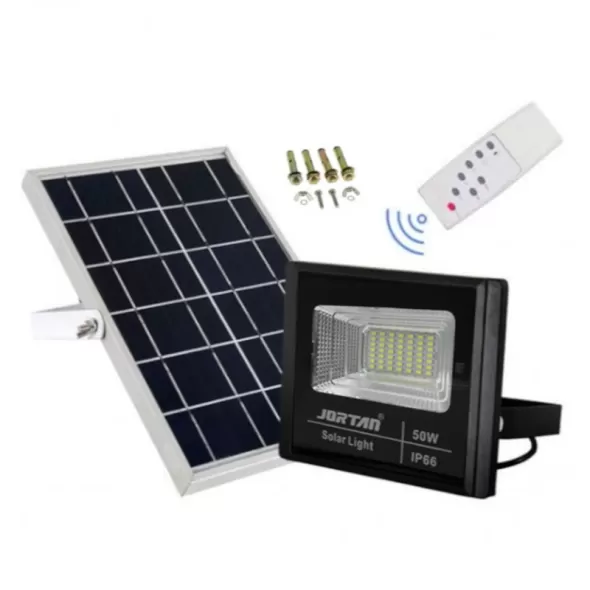 Αδιάβροχος Ηλιακός Προβολέας LED 50W 4000LM με Πάνελ και Τηλεχειριστήριο Jortan JT-BJ50W