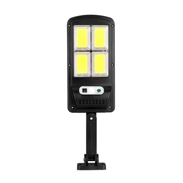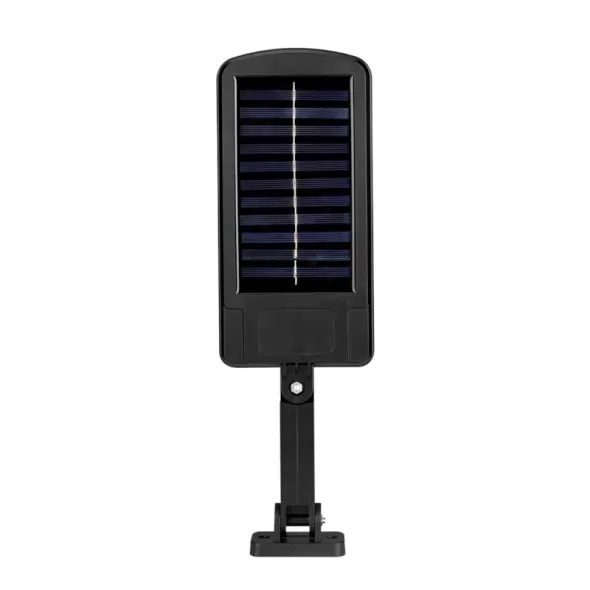 Αδιάβροχο ηλιακό φωτιστικό τοίχου σε μαύρο χρώμα, με 3 λειτουργίες και ψυχρό λευκό φωτισμό COB LED. Ο ενσωματωμένος αισθητήρας φωτός ενεργοποιείται αυτόματα με τη δύση του ηλίου, συλλέγοντας ηλιακή ενέργεια κατά τη διάρκεια της ημέρας.