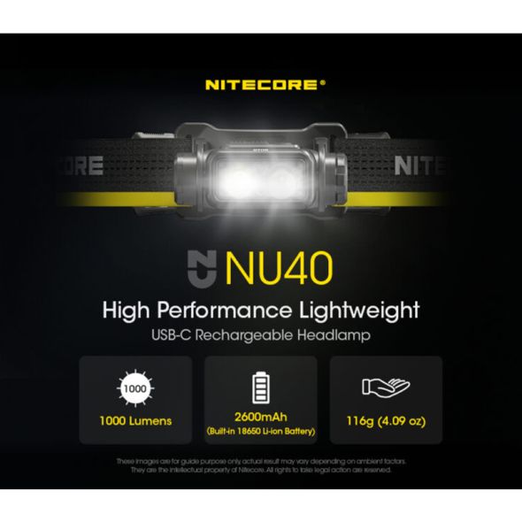 Με τον καινοτόμο σχεδιασμό που ενσωματώνει την επαναφορτιζόμενη μπαταρία Li-ion 18650, ο NU40 μπορεί να αποδώσει φωτεινότητα 1000 Lumens ενώ συνδυάζει χωρητικότητα ενέργειας 2600mAh και βάρος μόλις 116g , σπάζοντας τους περιορισμούς της χωρητικότητας και της απόδοσης των κοινών φακών που χρησιμοποιούν μπαταρία 18650.